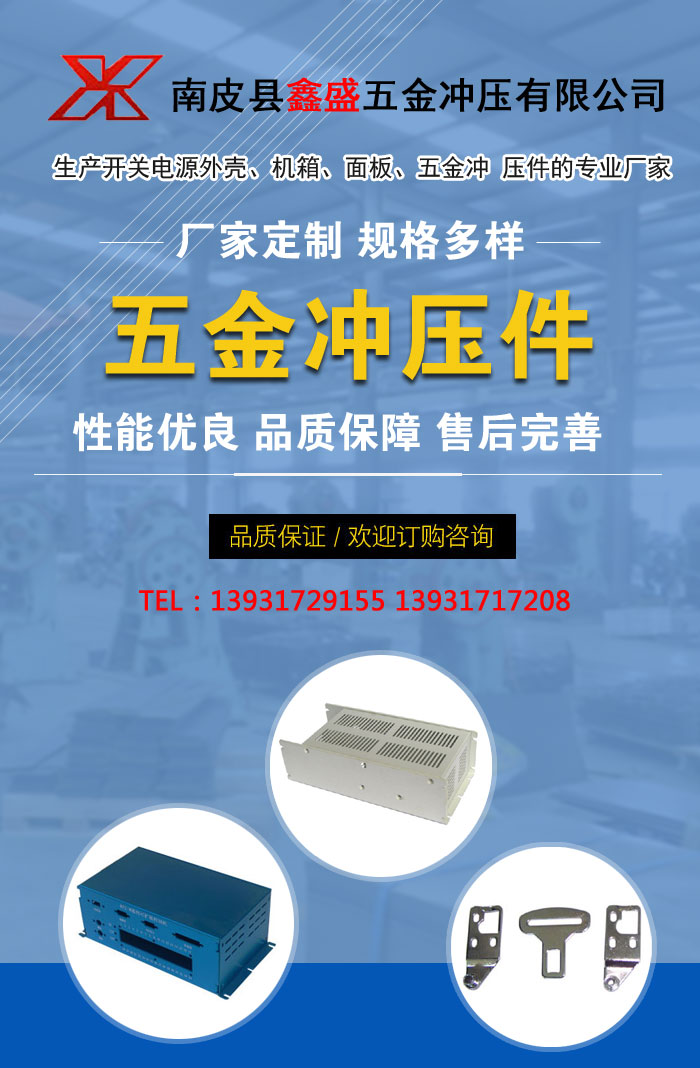 南皮縣鑫盛五金沖壓有限公司成立于1987年,是生產(chǎn)開(kāi)關(guān)電源外殼、機(jī)箱、面板、五金沖 壓件的專業(yè)廠家,位于“五金之鄉(xiāng)”河北省南皮縣車官屯工業(yè)園區(qū)。